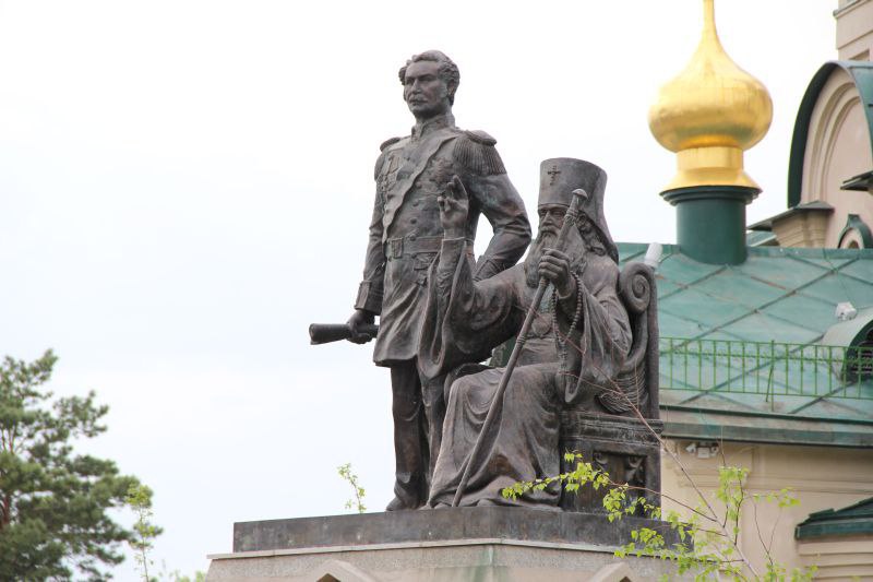 Памятник основателям Благовещенска Н.Н. Муравьеву-Амурскому и святителю Иннокентию. Скульптор Валерий Разгоняев