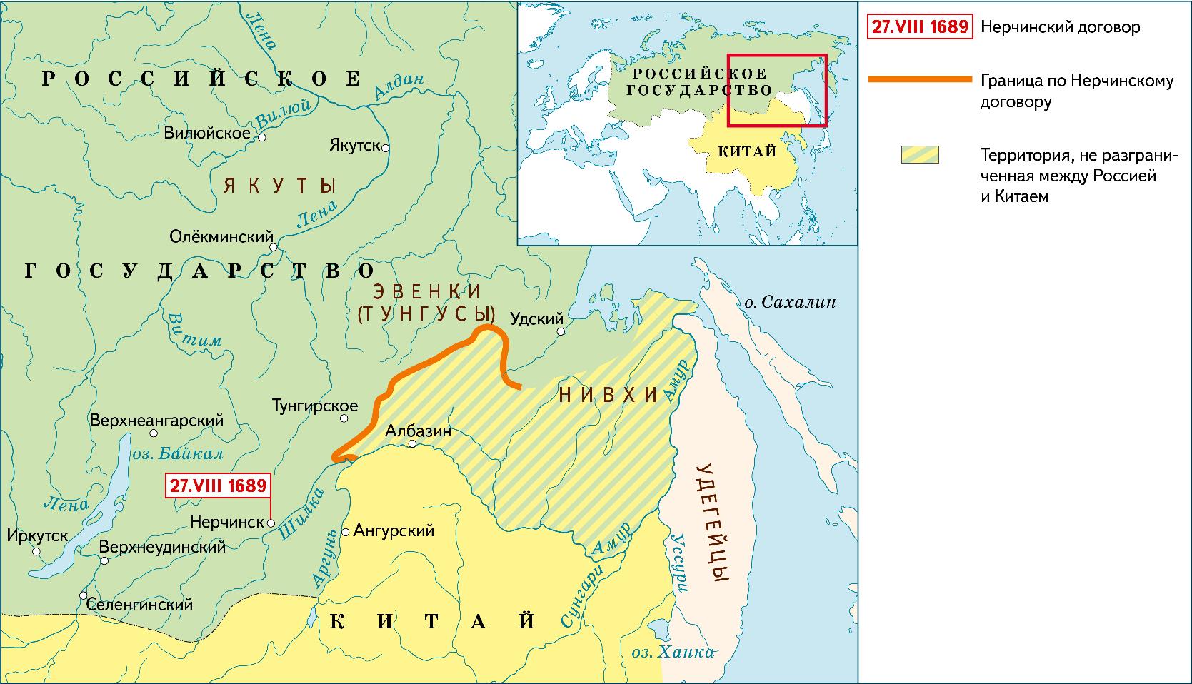 Карта территориальных потерь России по Нерчинскому договору 1689 года