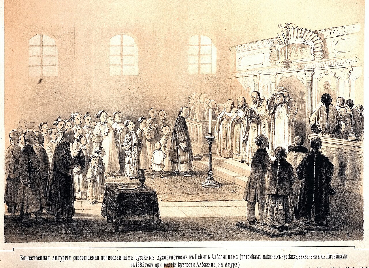 Потомки казаков-албазинцев на православной литургии в конце XIX века