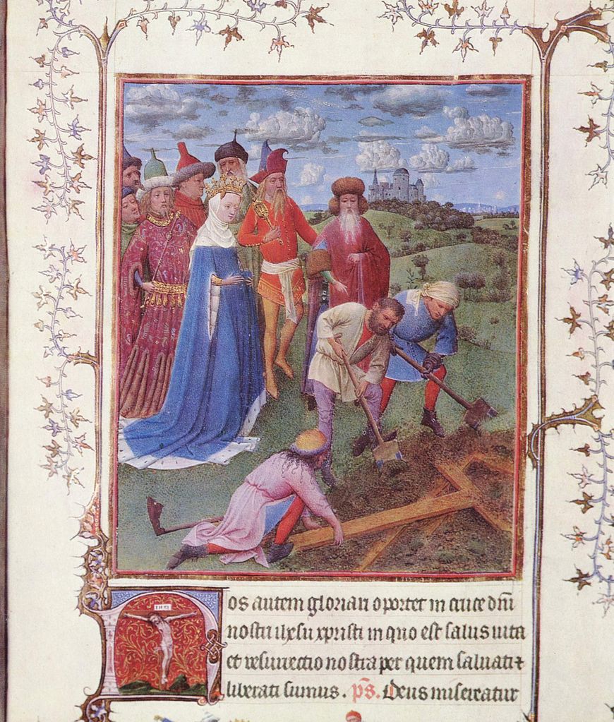 Обретение Креста Господня святой равноапостольной царицей Еленой. Турино-Миланский часослов. к. XIV — нач. XV вв.