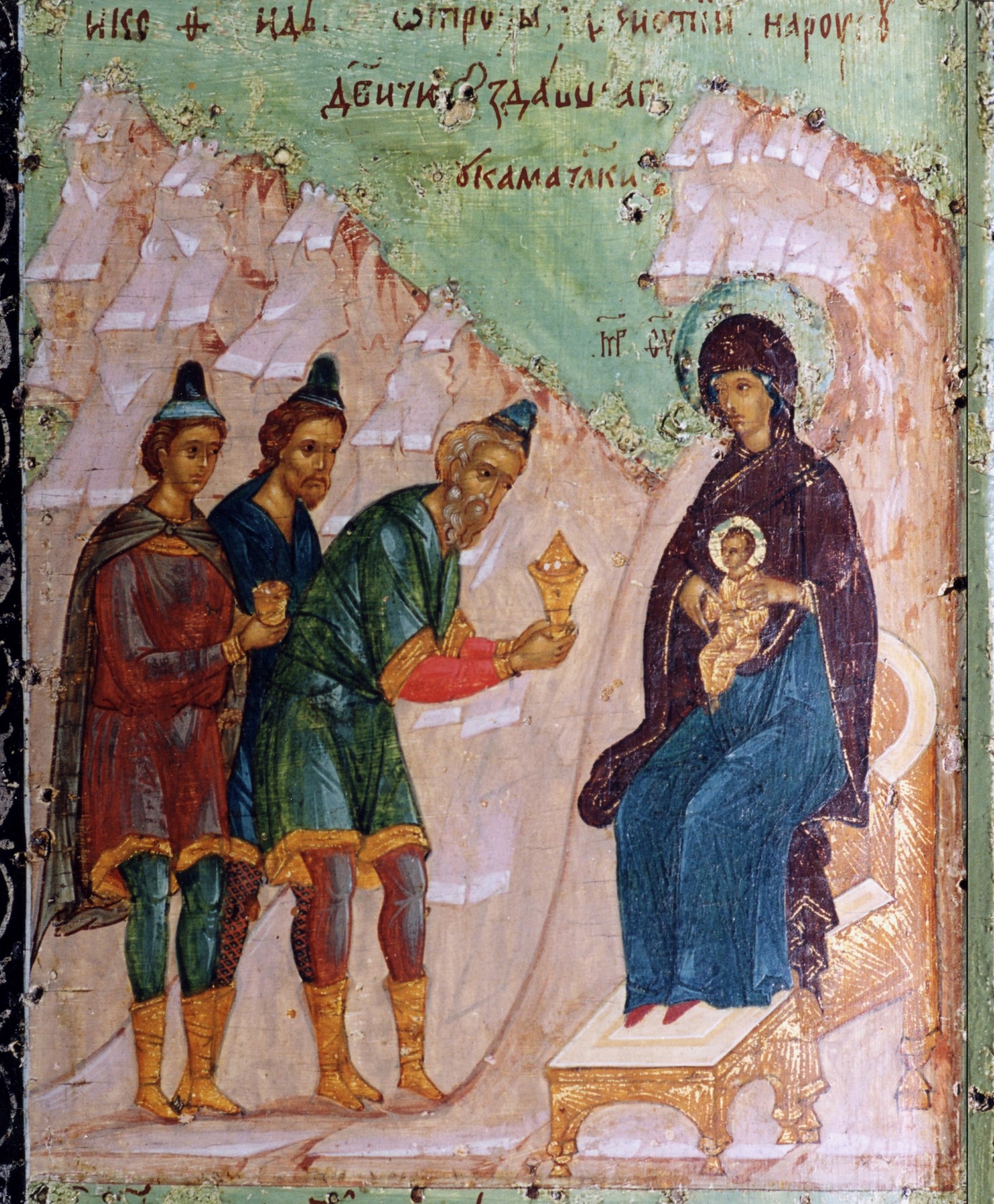 В общем, в отличие от строгих канонов изображения Христа, Божией Матери, большинства известных святых, в теме поклонения волхвов иконописцу, как художнику дозволялось разгуляться фантазией. Ведь евангельский рассказ св. евангелиста Матфея не содержал изобразительных, да и многих, вроде бы, важных фактологических подробностей.