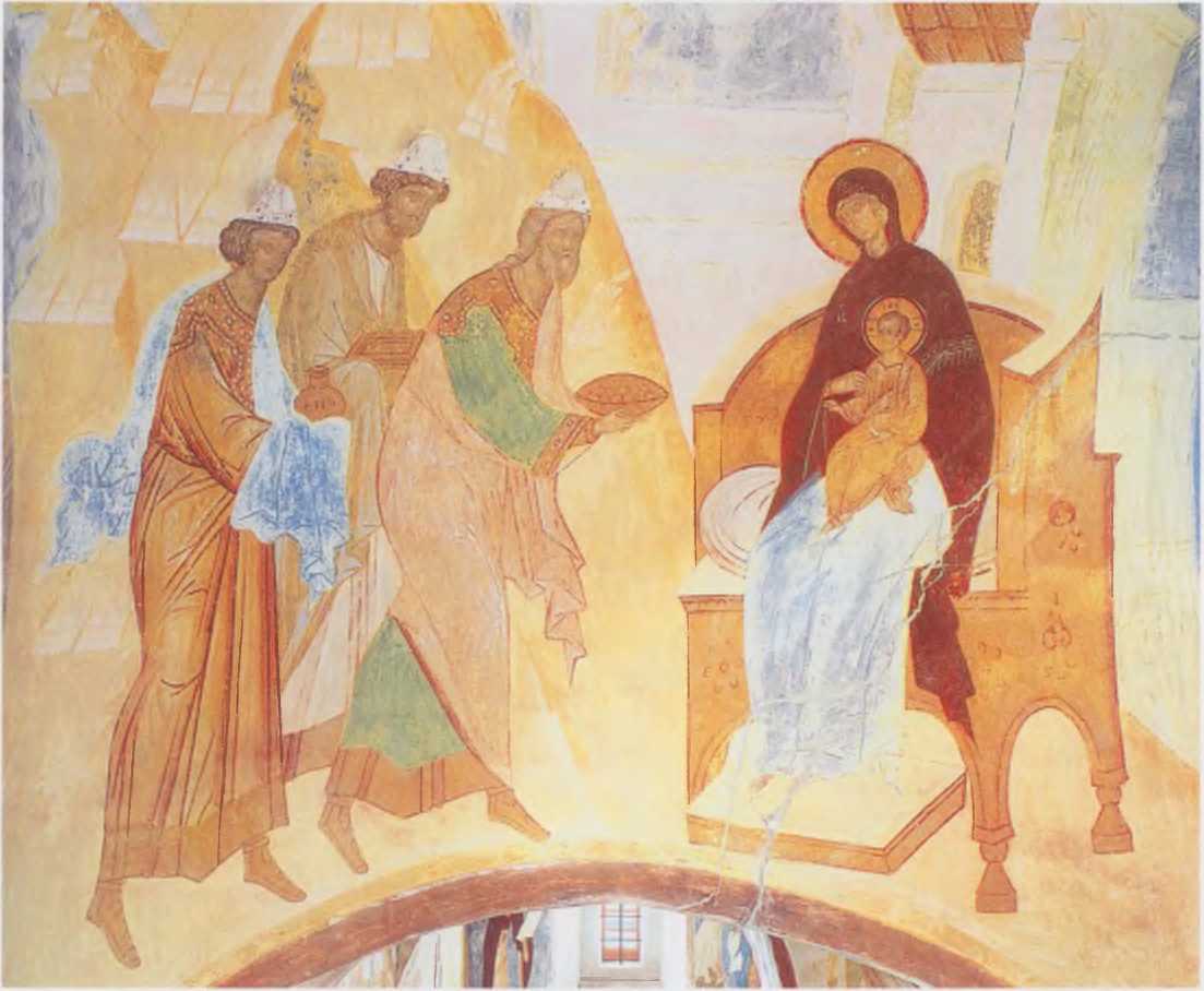 Дионисий. «Видеши отроцы халдейстии...» (Поклонение волхвов). Фреска 1502 г. Ферапонтов монастырь, Вологодская область.