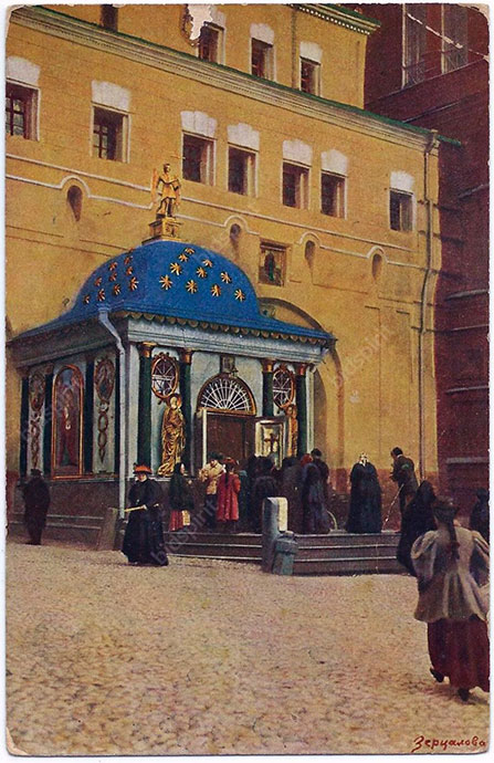 На месте же сретения иконы, у Воскресенских ворот Китай-города, был помещен еще один список Вратарницы, благодаря чему ворота с той поры стали называть Иверскими. Там икону поместили сначала в нише, потом в деревянной, а с XVIII в. – в каменной, часовне. Помещенный туда образ был значительно больше, чем принесенный с Афона, и сразу же стал весьма почитаться верующим народом.