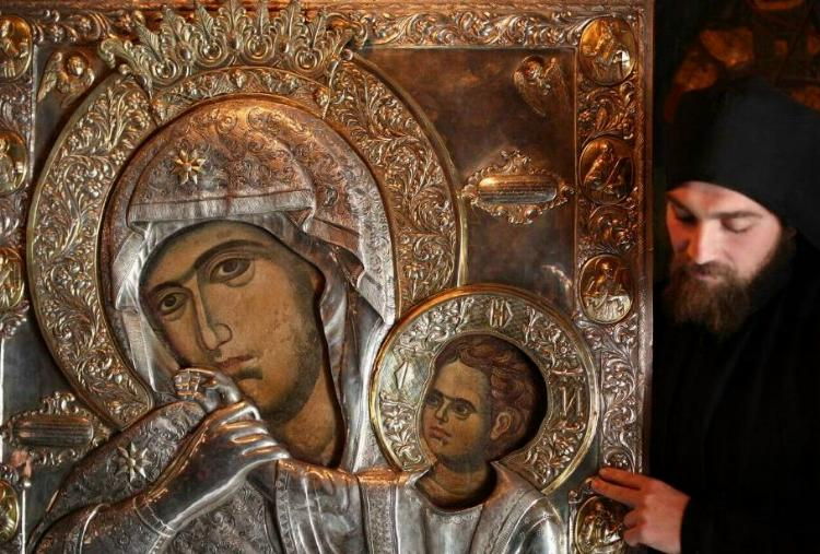 3 февраля 807 года игумен афонского монастыря Ватопед молился Богородице перед ее святым образом. Вдруг Царица небесная ожила, повернулась к игумену и предупредила его о разбойниках, намеревавшихся ночью напасть на обитель. Богородица сказала: «Не отверзайте сегодня врат обители, но взойдите на стены монастырские и разгоните разбойников». После этого Младенец-Иисус простер Свою руку, и закрывая уста Матери, сказал: «Нет, Мать Моя, не говори им этого, пусть они будут наказаны». Но Богоматерь, стараясь удержать руку Сына, дважды повторила свое предупреждение. Игумен собрал братию. Они принесли покаяние за свои грехи, поспешили на монастырские стены и вовремя отразили нападение разбойников.