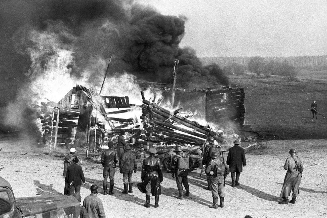 Оккупанты сжигают деревню Хатынь. Белоруссия, 22 марта 1943 г.
