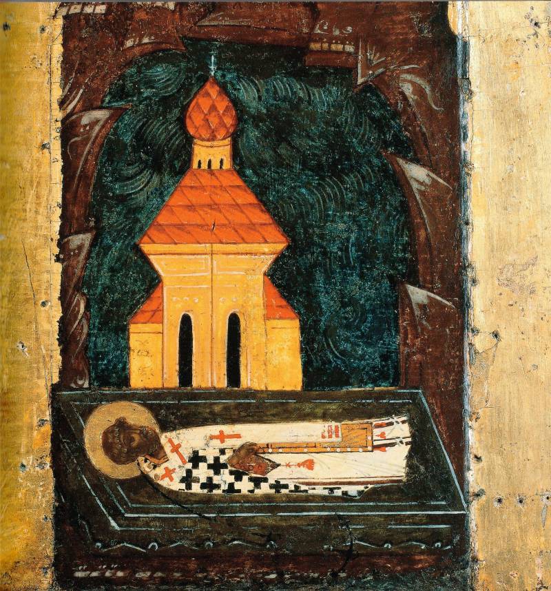 Свт. Климент, папа Римский, с житием. Икона сер. XVI века. Фрагмент.
