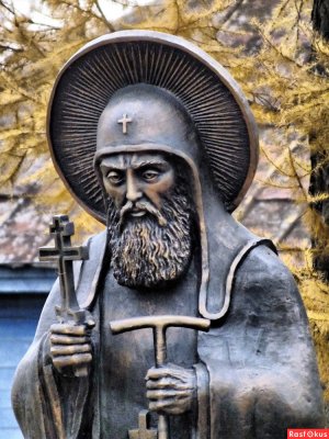 Памятник прпмч. Корнилию в Псково-Печерском монастыре. Скульптор И. В. Голубев