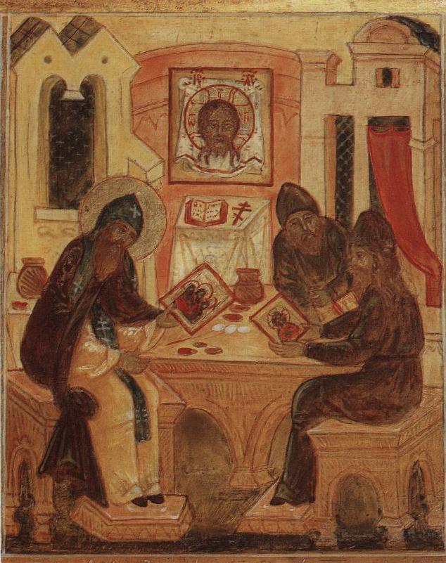 Прп. Корнилий в иконописной мастерской. Клеймо иконы «Преподобномученик Корнилий в житии»