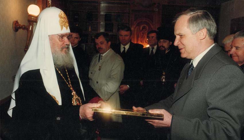 Патриарх Московский и всея Руси Алексий II и Н.И. Рыжков на Третьем ратном поле России. Май 1995 г.