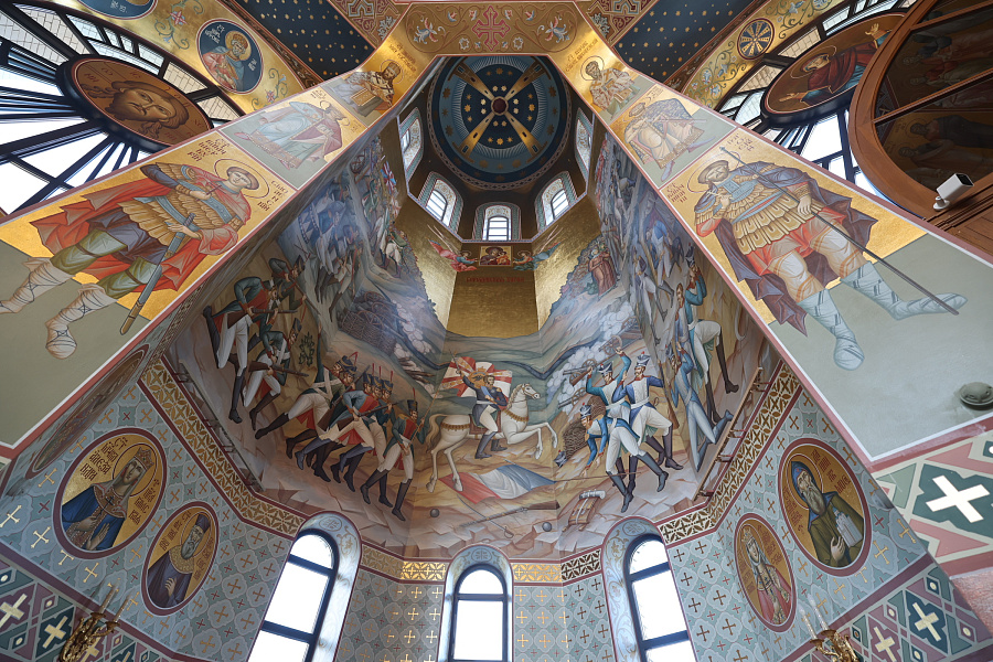 Летом 2022 г. на сводах храма появились росписи с ликами русских полководцев разных эпох – как канонизированных (Александр Невский, Димитрий Донской, Феодор Ушаков и др.), так и неканонизированных (Александр Суворов, Павел Нахимов, Михаил Скобелев и др.)