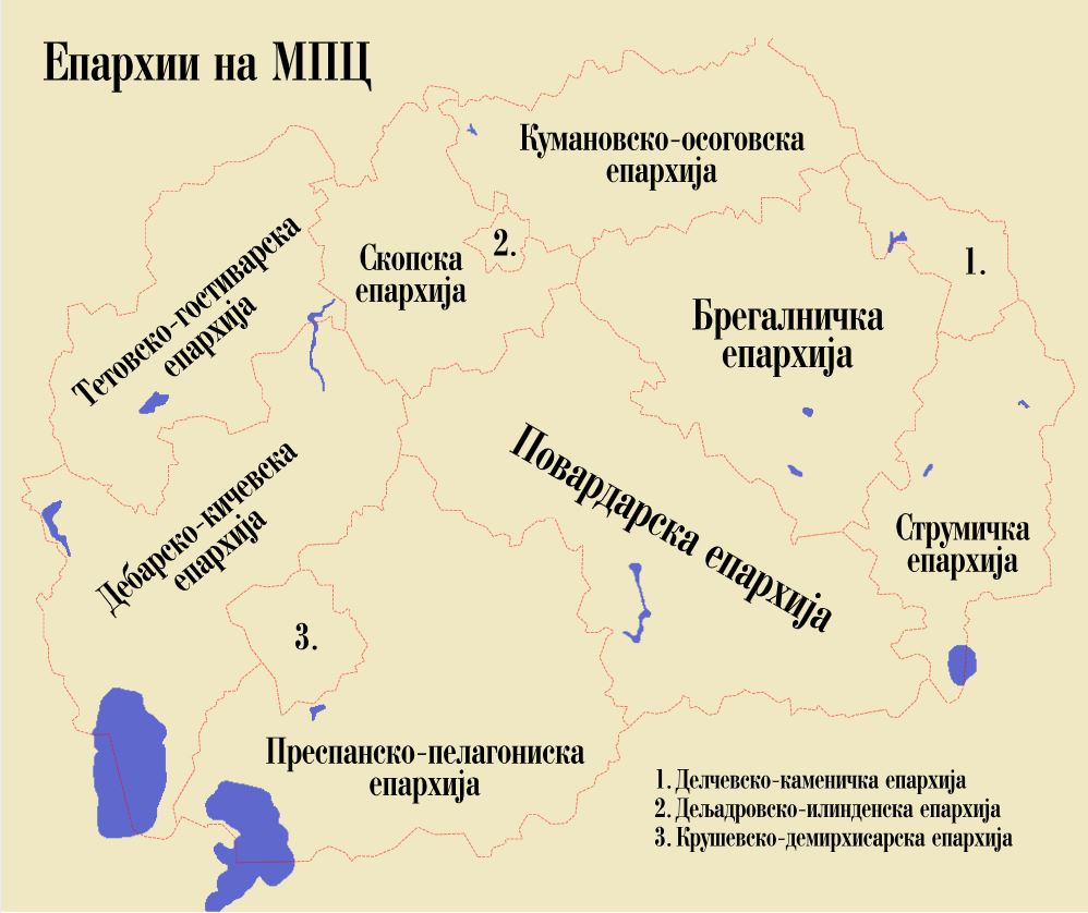 Карта епархий МПЦ-ОА на территории Республики Северная Македония