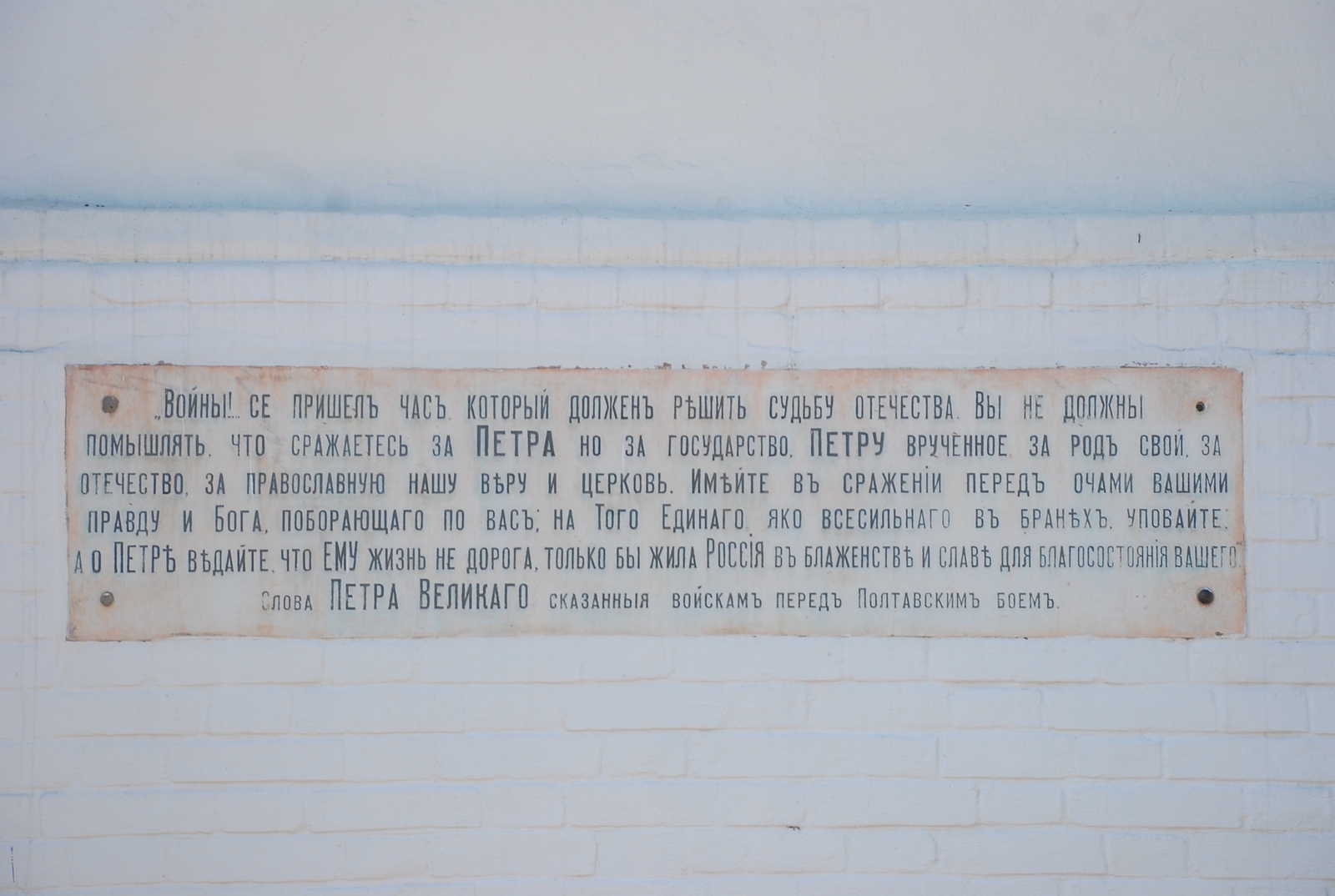 Слова царя Петра Великого перед Полтавской битвой. Фрагмент украшения Сампсониевской церкви на поле сражения. Полтава, Украина