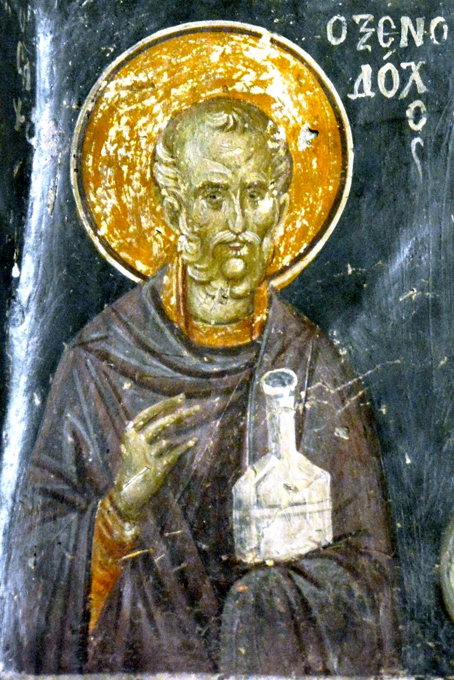 Преподобный Сампсон Странноприимец. Фреска церкви Святого Николая Орфаноса монастыря Влатадон. Салоники, Греция. 1310 - 1315 гг.