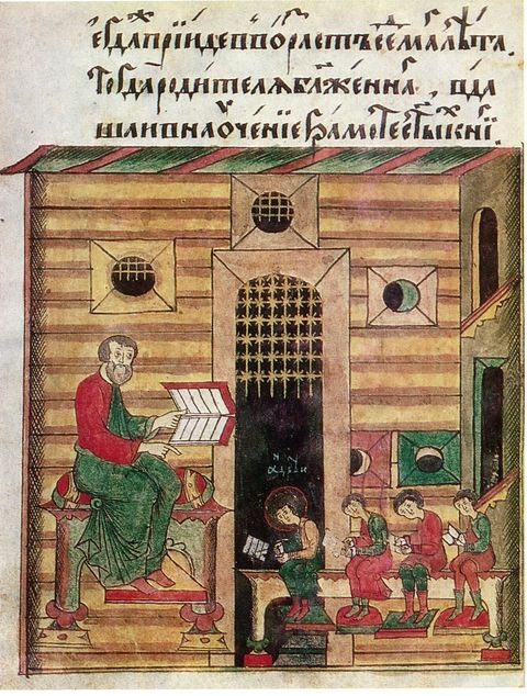 С первых же лет христианства на Руси роль главного просветителя взяла на себя Православная Церковь. Первая школа «книжного учения» была открыта в Киеве святым великим князем Владимиром при Десятинной церкви. Вторая школа была основана его сыном, святым Ярославом Мудрым, в Великом Новгороде для обучения детей местных старост и духовенства. Подобные школы были учреждены и в других крупных городах — Смоленске, Суздале, Курске, Владимире.