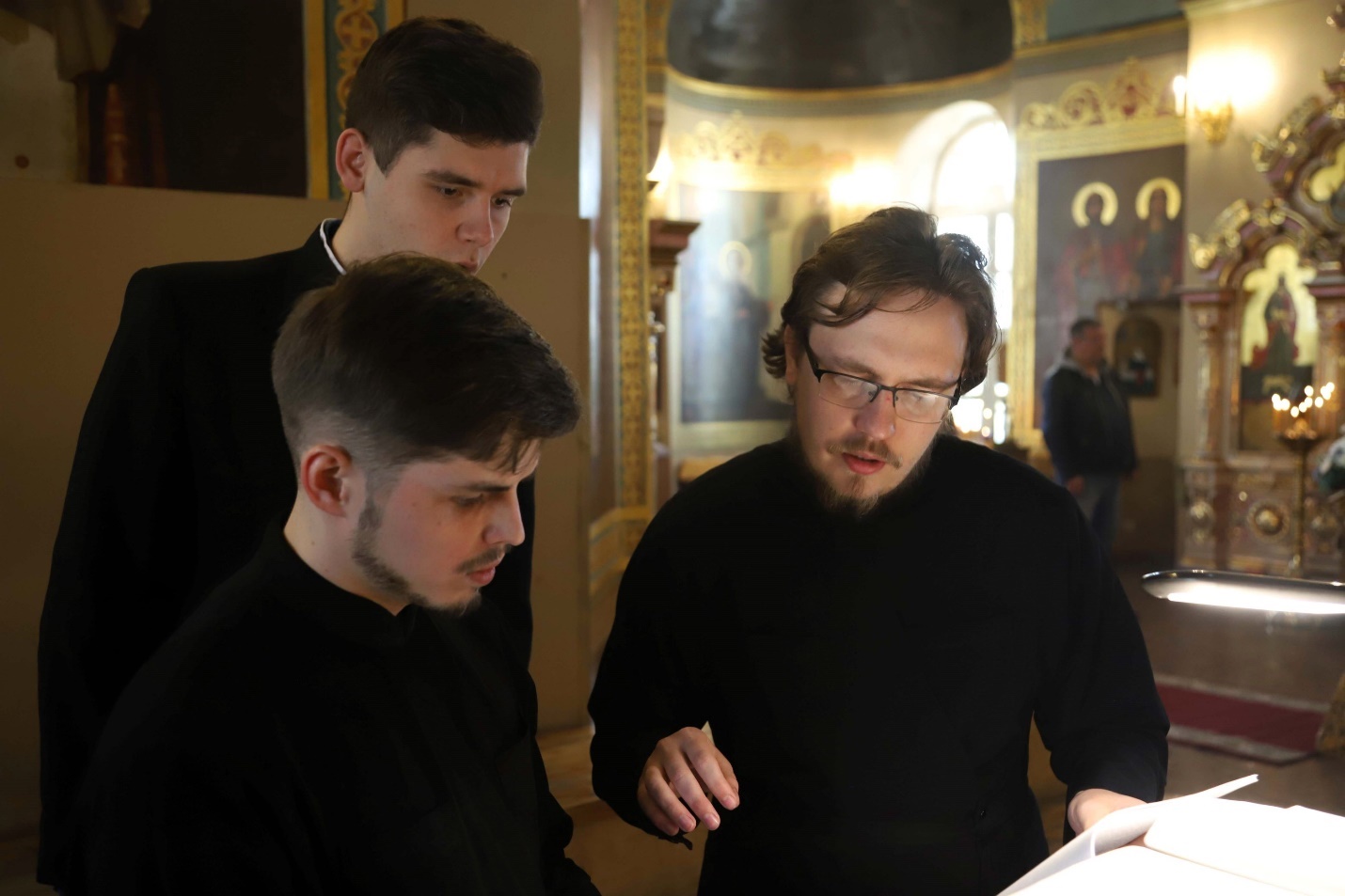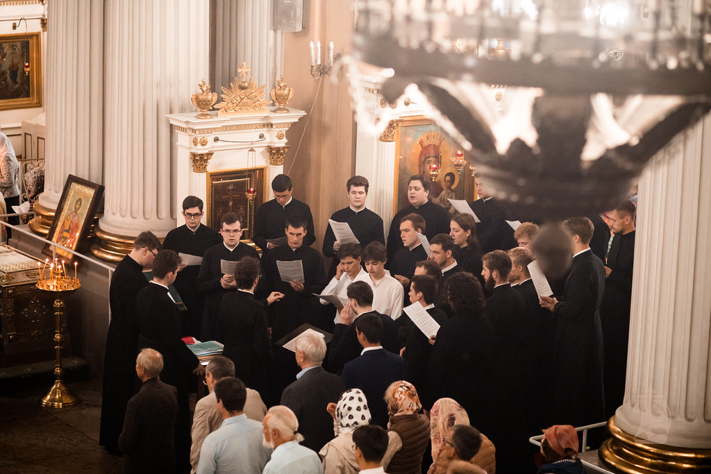 Студенты СПбДА поют на клиросе в Троицком соборе Александро-Невской Лавры
