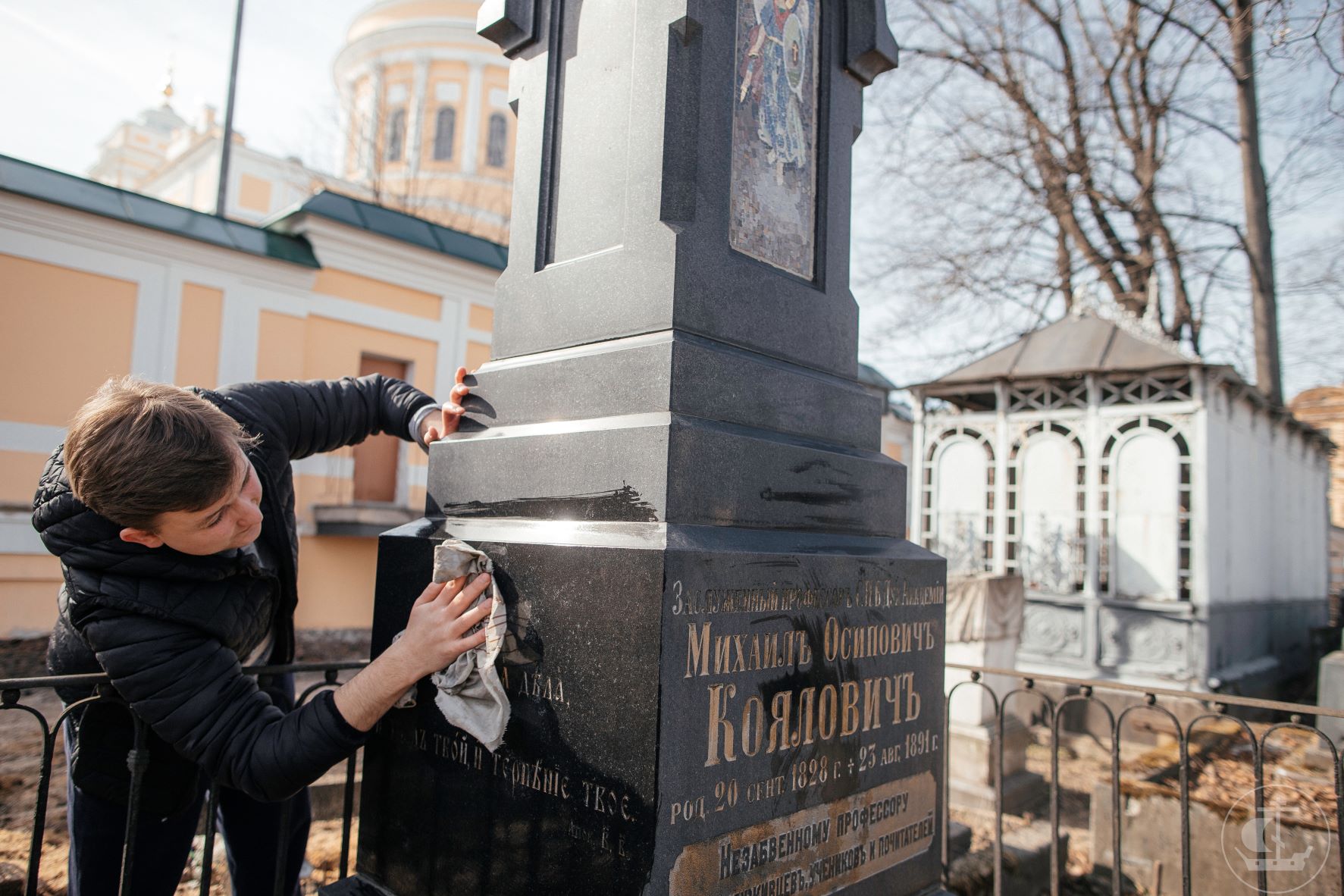 Студенты СПбДА ухаживают за могилами на Никольском кладбище Александро-Невской Лавры