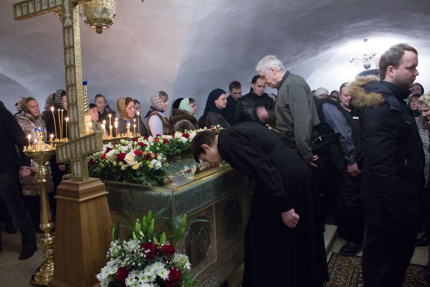 Студенты Вологодской духовной семинарии поклоняются мощам прп. Димитрия Прилуцкого