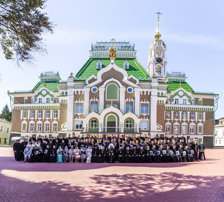 Участники III Всероссийской Феофановской теолого-педагогической конференции на фоне нового корпуса Тамбовской духовной семинарии