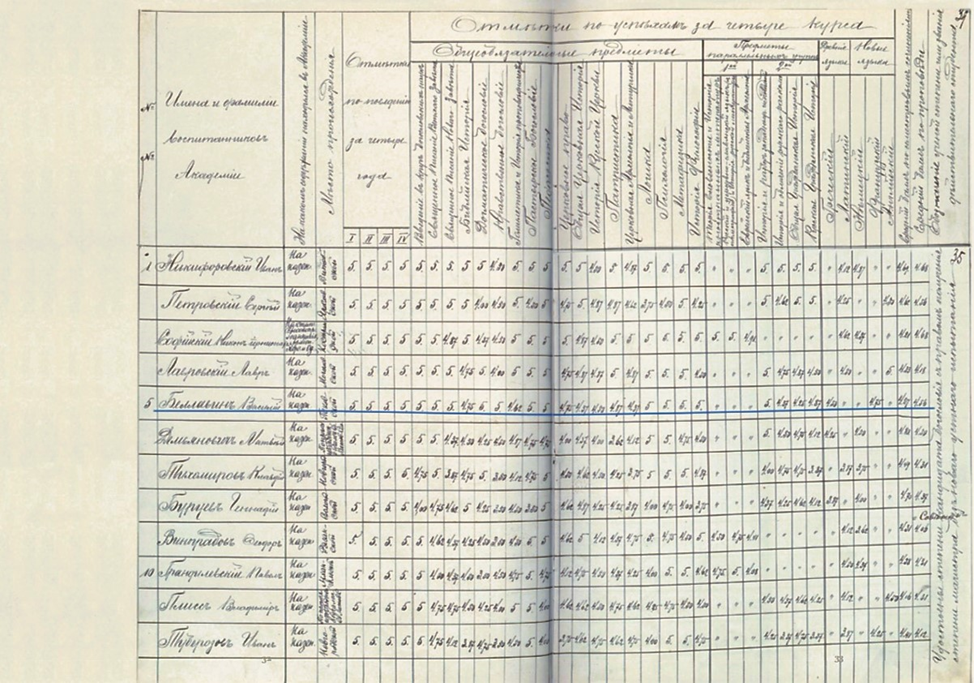Табель успеваемости студентов СПбДА. Пятый сверху – Василий Беллавин.
